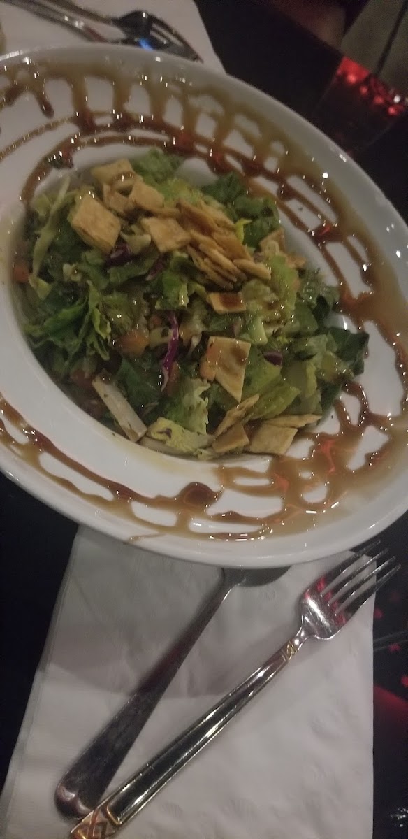 The menu showcases a variety of Mediterranean staples and bar favorites that stand out in both flavor and portion size. Popular choices include the Hummus and Pita Bread, fresh Fatoush and Tabouli Salads, and hearty platters like the Mixed Grill or the spiced Chicken Tikka. For those interested in cocktails, the Mai Tai crafted by their mixologist Joel offers a creative twist, while fans of spirits will find a decent selection of bottles available, including renowned options like Hennessy and Casamigos. Sweet tooths can finish on a traditional note with Knafeh, a syrup-soaked pastry that anchors the dessert offerings.